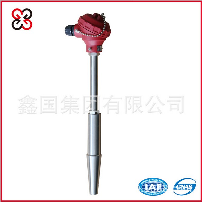 高溫高壓熱電偶(熱電阻),其整體鉆孔保護(hù)套管采用焊接的方法與主設(shè)備固定密封,它可用來(lái)測(cè)量電廠管路的蒸汽或水溫。根據(jù)所使用的壓力、溫度和流速的差異,具有兩種相應(yīng)的結(jié)構(gòu)和安裝方式,供用戶選擇。本熱電偶(